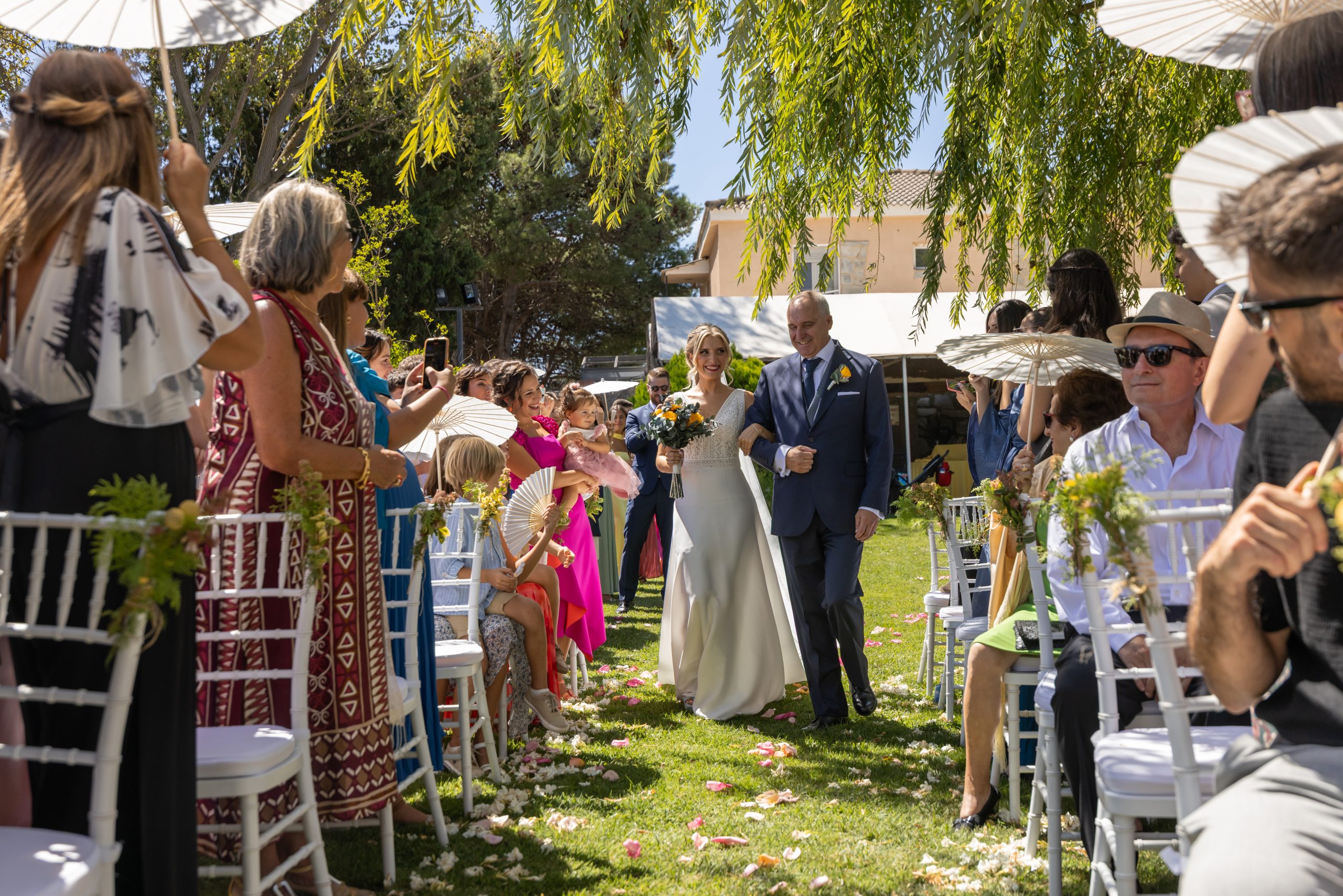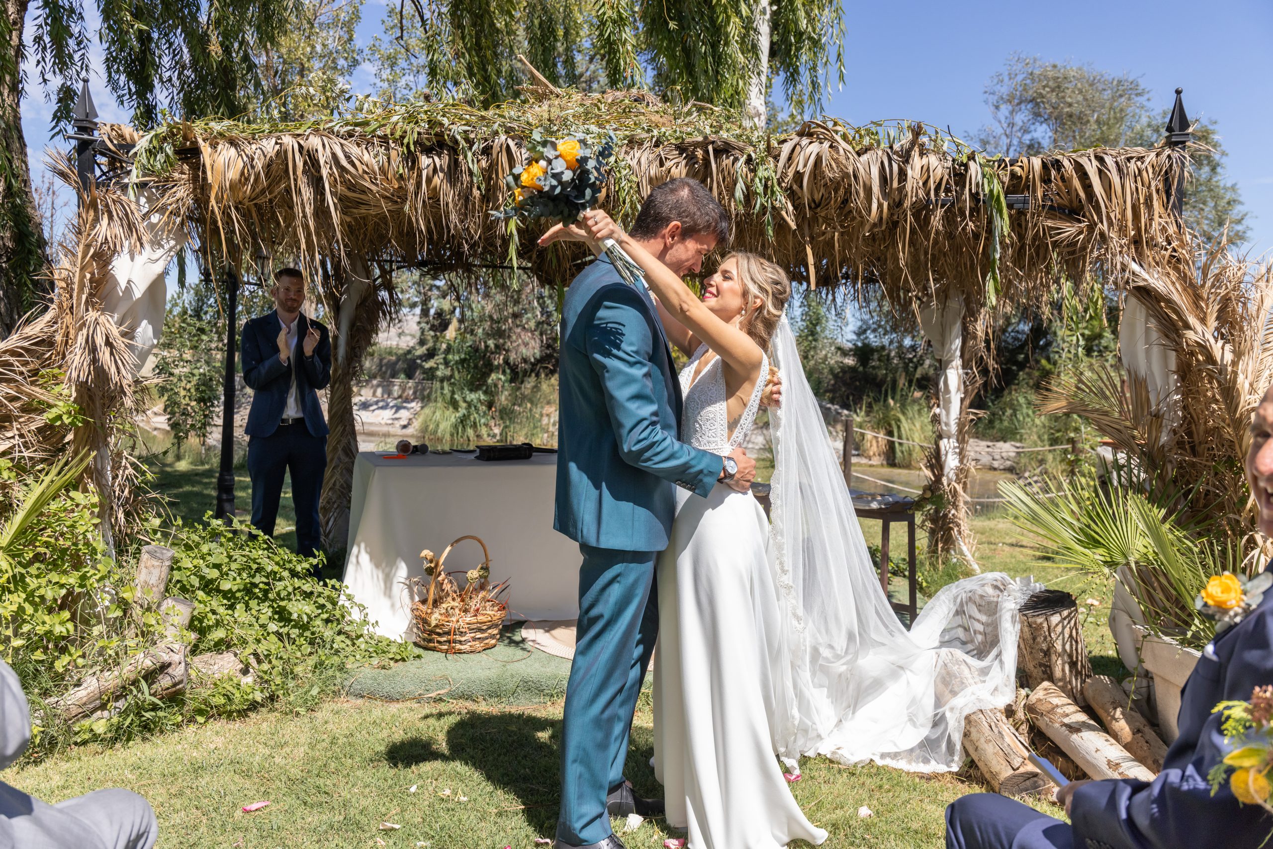 Ana y Jorge celebraron su boda en la Ínsula Barataria, uno de los lugares más emblemáticos de Aragón. Un entorno lleno de encanto, con jardines, luz natural y una atmósfera que respiraba romanticismo desde el primer momento.