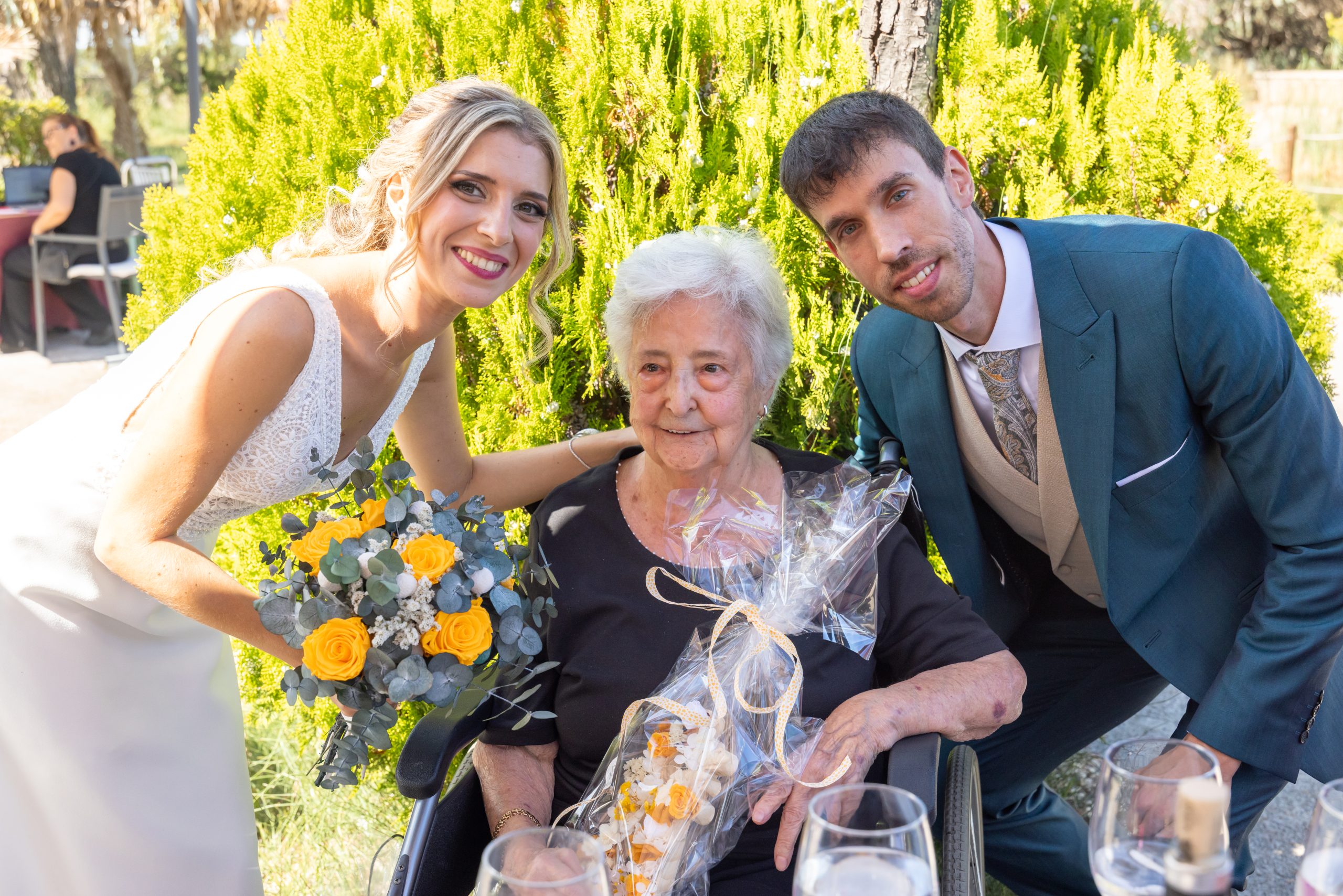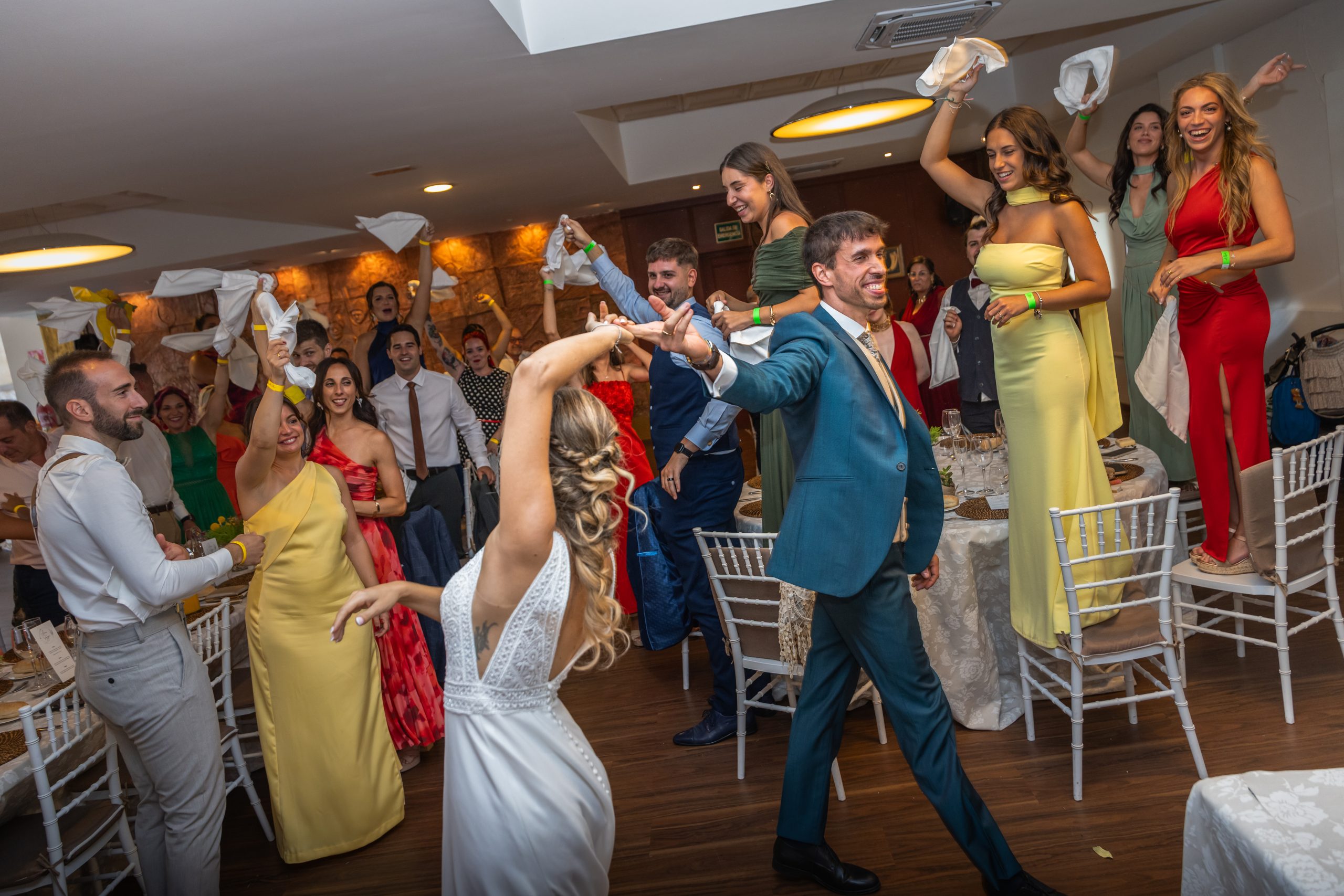 Tras el “sí quiero”, los invitados disfrutaron de un banquete inolvidable, donde no faltaron las risas, los brindis y las sorpresas preparadas con cariño. La Ínsula Barataria se convirtió en el escenario perfecto para vivir una celebración elegante, cercana y llena de vida.